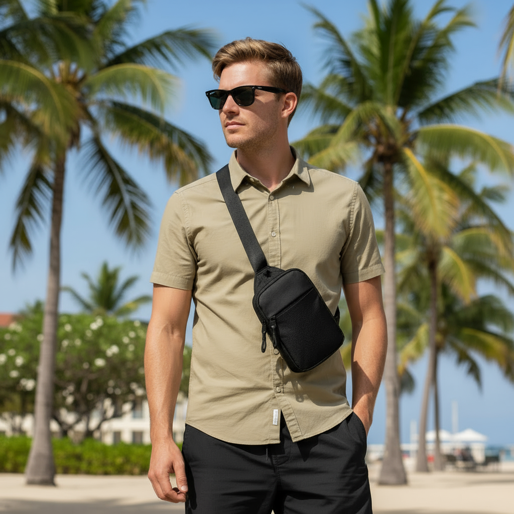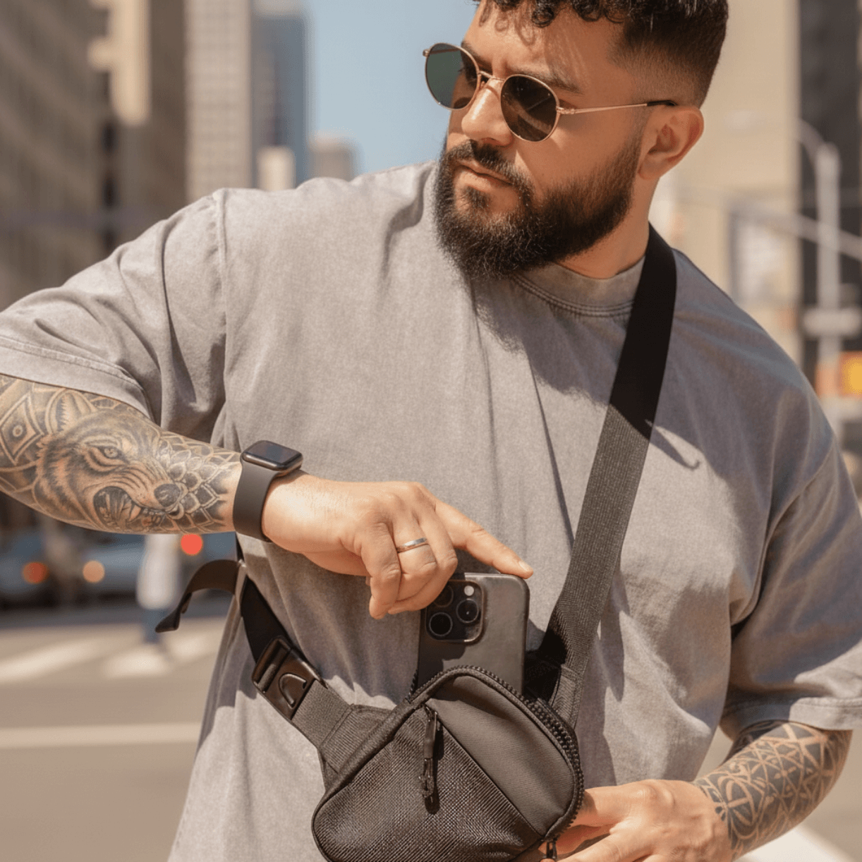 Sehr praktisch bei Konzerten oder Festivals, alles griffbereit und sicher verstaut. Behindert nicht beim Tanzen.